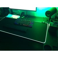 ARTISANの紫電改からまさかの買い替えです。もともと、キーボードの角がマウスパッドに乗っている不安定な感じが気になっていて、デスク全面をカバーできるマウスパッドで、かつ、光り物を探していたので、コレになりました。表面は布製とはいえ、適度な滑らかさと、程よい厚みがあり、マウスは動かしやすいです。